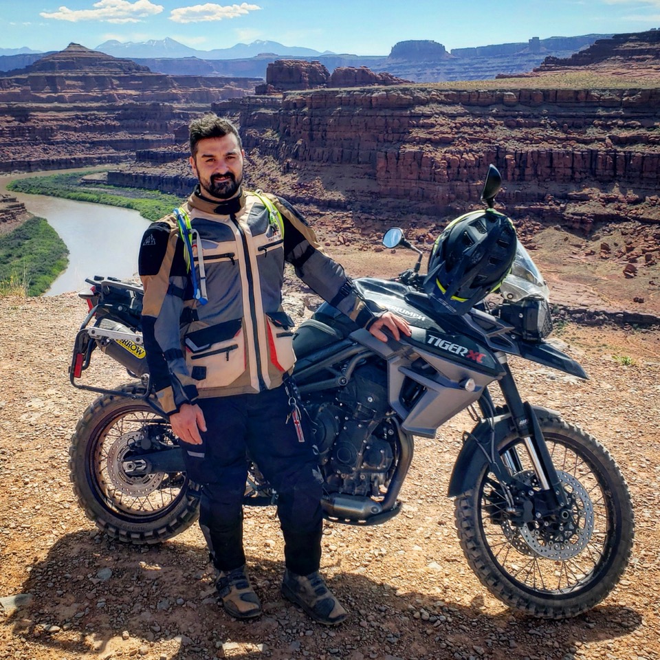 I really fell in love with traveling by bike with my Royal Enfield Himalayan. I found that the bike limited my tendency to over pack for a trip. I could only carry what was necessary in my small panniers so if it wasn’t required, I couldn’t spare the room. It showed me a simplistic way of traveling and removing all the static around me. I found myself wanting more. To have a bike that would allow me to get to my destination comfortably and promptly but that wasn’t limited once the tarmac ended. I was lucky to find a Triumph Tiger 800xc, ready to go with aluminum boxes and dual sport tires. The first time I rode that bike I knew I had to have it. The punch from the triple made it feel like a street bike but with knobby tires. Now, to be sharing the experience it brings with the group rides and events we have through our community of riders. I love it!